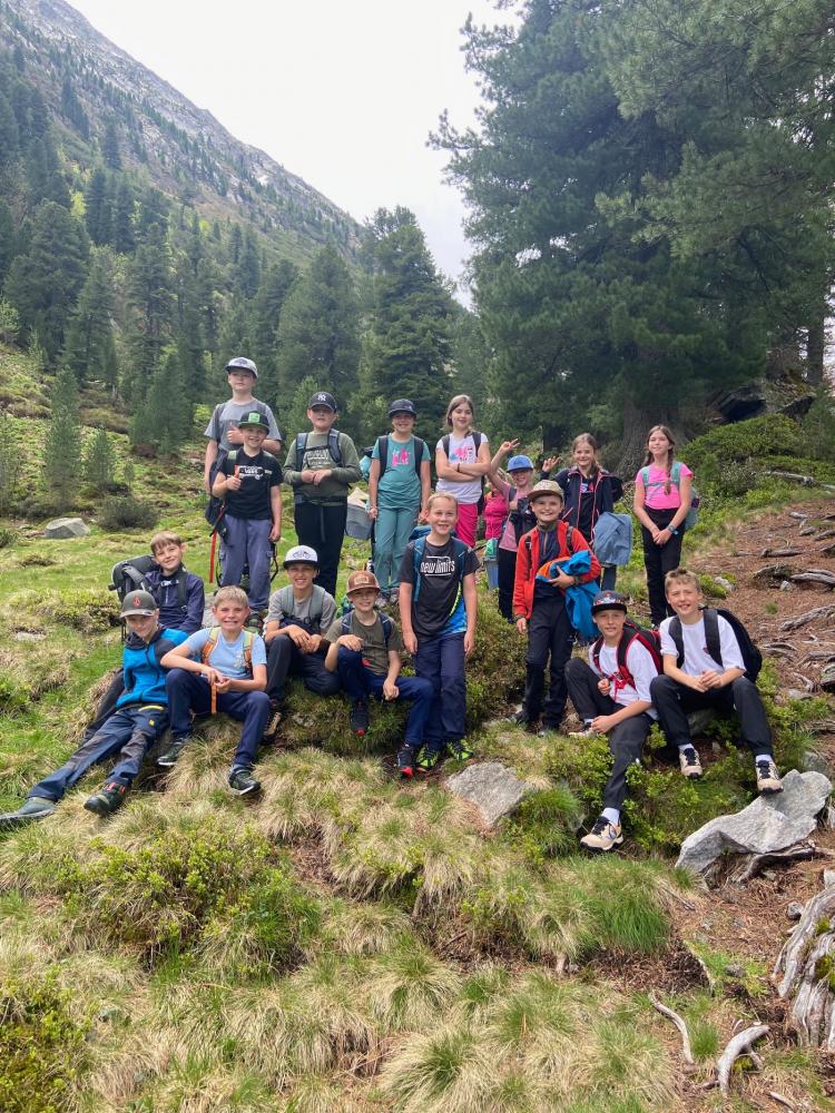 Die 4. Klasse verbrachte zwei spannende Tage beim Schlegeisspeicher. Im Mittelpunkt stand das Thema Steinzeit. Die Kinder konnten unter anderem Ausgrabungen machen, Steinzeitschmuck anfertigen und mit Pfeil und Bogen schießen. Auch die gute Verpflegung und das gemeinsame Übernachten in der Dominikushütte machten die Tage zu einem besonderen Erlebnis. Ein weiteres Highlight war eine Führung durch die Staumauer des Schlegeisspeichers.